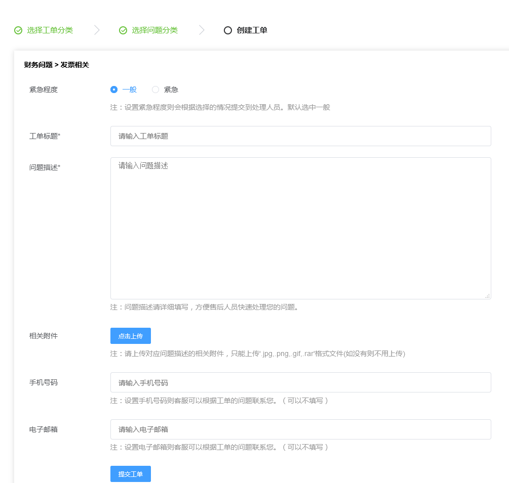 1、支持多分类,支持工单自动分配或人工指派等,支持多用户流转回复,让售后服务透明化,可跟踪,可监督, 提升服务人员工作效率,支持对外Api接口,可集成自定义信息表。