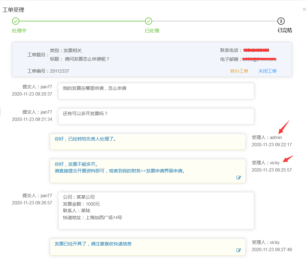 2、支持邮件,手机短信催办受理人,回复后邮件通知用户。